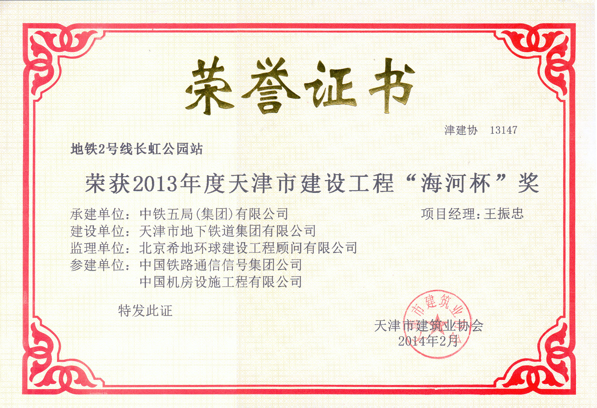 2013年度天津市建设工程“金奖海河杯”奖